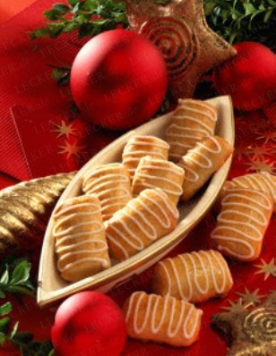 kleine Ecke abschneiden und die Brote mit Zuckerschleifen verzieren. Trocknen