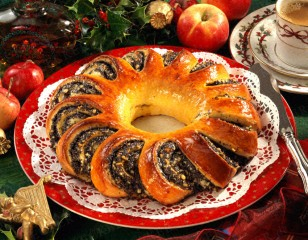backen. Eventuell abdecken. Kranz auf einem Kuchengitter auskühlen lassen.