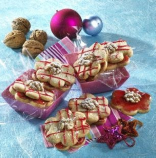 und je 1 Walnusshälfte darauf setzen. Zart mit