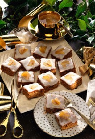 Ingwerpflaumenscheiben belegen. Trocknen lassen und in ca. 18 Quadrate
